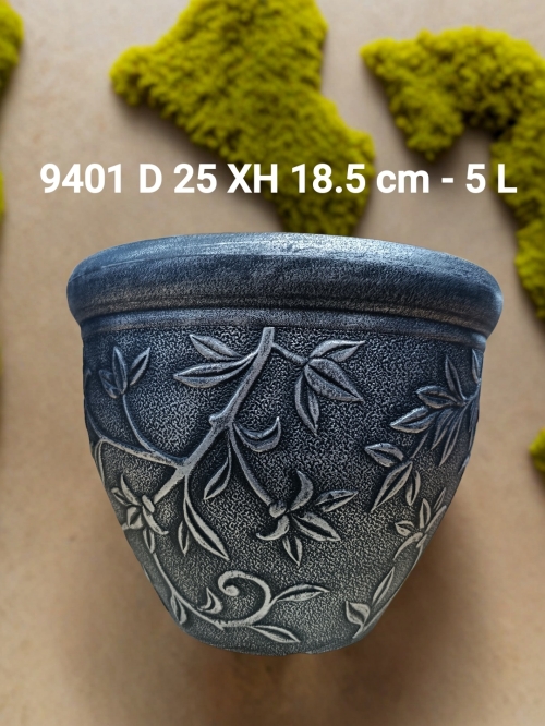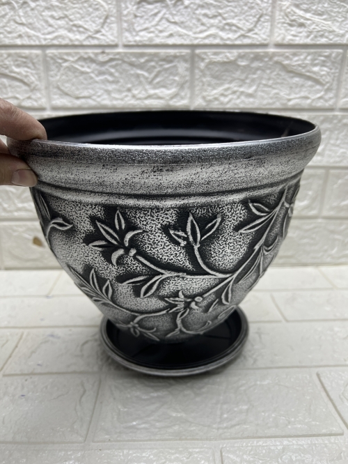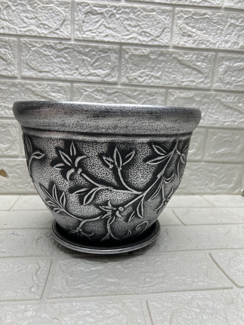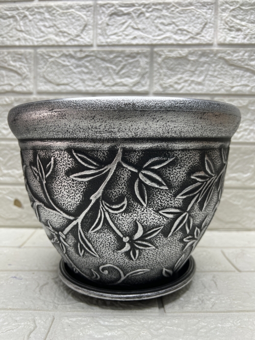 Пластмассовый горшок с подоном Цвет серебро Размер 25х18.5