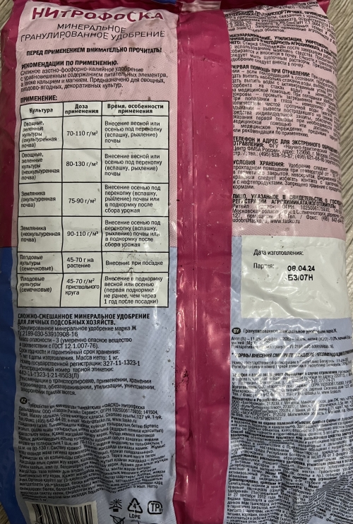 Нитрофоска минеральные гранулированные удобрения 1кг