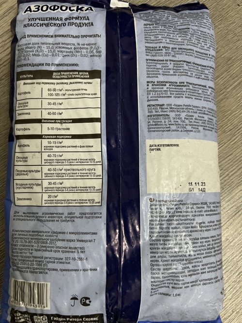 Азофоска улучшенная формула классического продукта комплексные минеральные удобрения с микро элементами