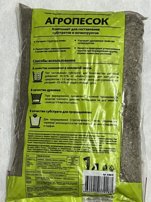 Агро песок био-мастер компонент для составления субстратов и почвогрунтов 1л