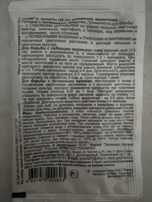 ГРОМ -2 10гр микрогранулы от садовых муравьев и почвенных комнатных мушек