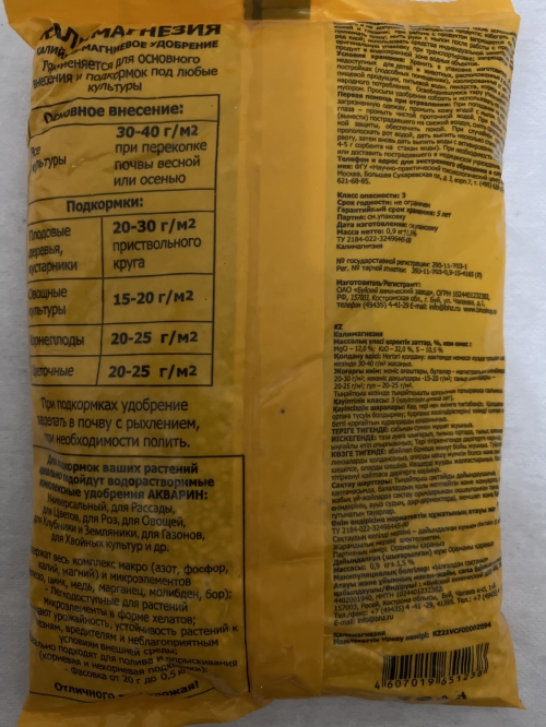 Калимагнезия бийский удобрения для содов и огородов