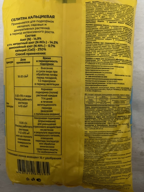 Селитра кальцивая профилактика по бурение листьев слабой корневой системы отмирания точек роста падения завязи