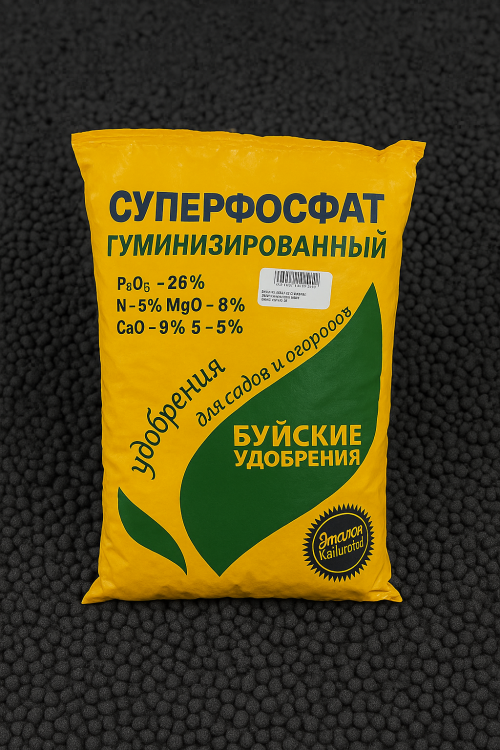№2594 Суперфосфат Суперфосфат гуминизированный — это комплексное удобрение, которое сочетает фосфорную подкормку с органическим гуминовым компонентом. Он подходит для улучшения плодородия почвы, стимулирования роста корней и повышения усвоения питательных веществ. Вот как его использовать: