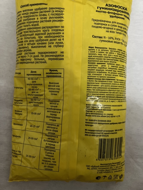 Азофоска Гуминизированная Буйский удобрения для садов и огородов