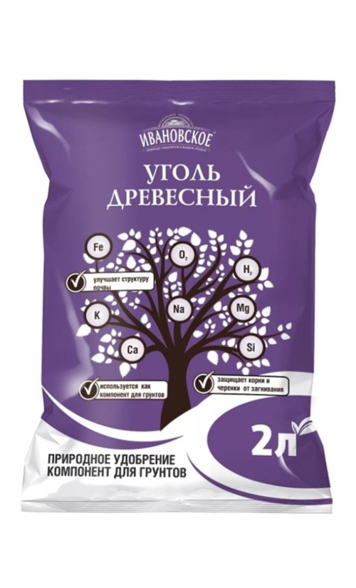 №2л Древесный уголь для цветов Уголь древесный Florizel — натуральный компонент для составления почвенных смесей и дренажа. Содержит полезные макро- и микроэлементы. Подходит для почвы горшечных растений и открытого грунта. Уголь может использоваться в качестве антисептической присыпке при обрезке клубней и корней.