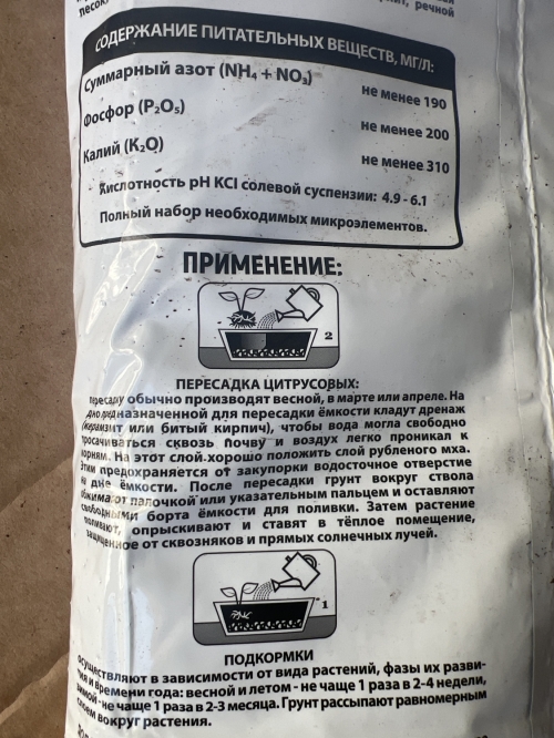 питательный грунт для цитрусовых для декоративных растений гарантия качества экологических чистый продукт Обём 5л