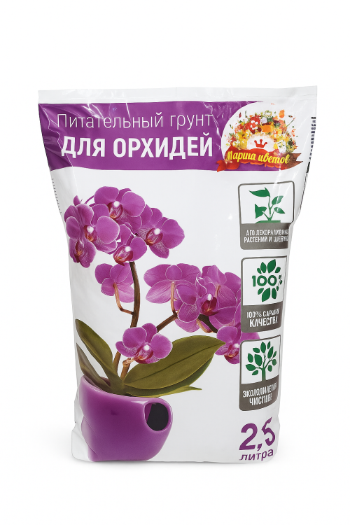 №9138 Готовый грунт для Орхидеи Грунт для орхидеи — это специальный рыхлый субстрат на основе коры, обеспечивающий отличную аэрацию корней и свободный от застойной влаги. Он создаёт условия, близкие к естественным, способствует здоровому росту корневой системы и продолжительному цветению орхидей