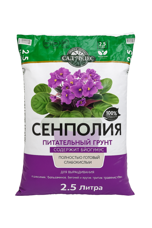 №4525 Готовый грунт для Сенполии Грунт для сенполии — это лёгкий, рыхлый и воздухопроницаемый субстрат, предназначенный для нежной корневой системы фиалки. Он хорошо удерживает влагу без застоя воды, обеспечивает растения необходимыми питательными веществами и способствует здоровому росту и продолжительному цветению сенполии.