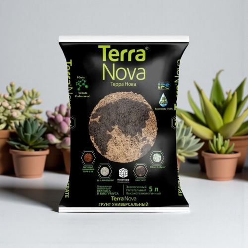 №3359 Terra Nova универсальный грунт Грунт Terra Nova универсальный — готовая питательная почвенная смесь для выращивания овощей, цветов, рассады и комнатных растений. Обладает лёгкой, рыхлой структурой, хорошим дренажем и сбалансированным составом питательных веществ, подходит для большинства культур.