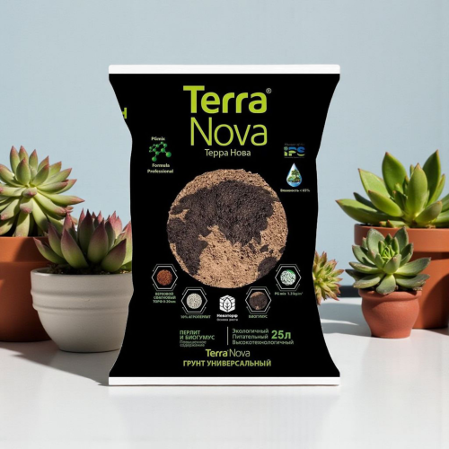 №6529 Terra Nova Грунт Terra Nova универсальный — готовая питательная почвенная смесь для выращивания овощей, цветов, рассады и комнатных растений. Обладает лёгкой, рыхлой структурой, хорошим дренажем и сбалансированным составом питательных веществ, подходит для большинства культур.