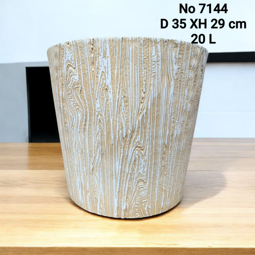 №2266 ЗЛ No 7144 Крупный цветочный горшок с фактурной поверхностью под светлое дерево. Натуральные бежево-белые оттенки создают ощущение уюта и лёгкости, подчёркивая современный и скандинавский стиль. Диаметр 35 см, высота 29 см, объём 20 л — отлично подходит для больших растений и станет выразительным элементом интерьера дома, офиса или террасы.
