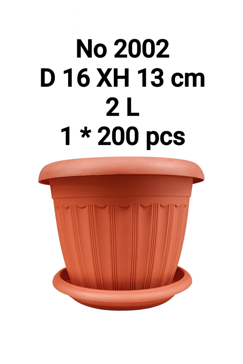 №0003 No 2002 Пластиковый цветочный горшок с поддоном, терракотового цвета.