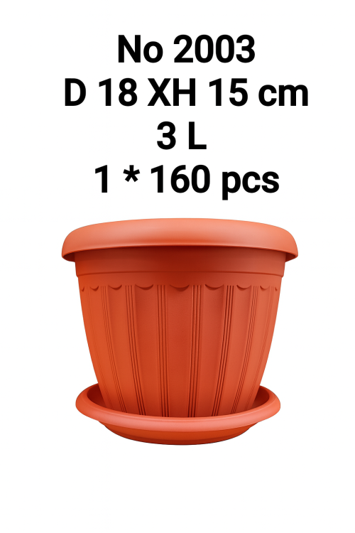 №0004 No 2003 Пластиковый цветочный горшок с поддоном, терракотового цвета.