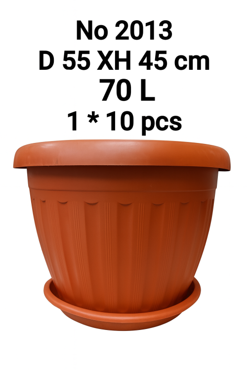 №0014 No 2013 Пластиковый цветочный горшок с поддоном, терракотового цвета.