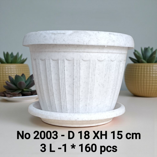 №0018 No 2003 (мрамор) Пластиковый цветочный горшок с поддоном, цвет мрамор.