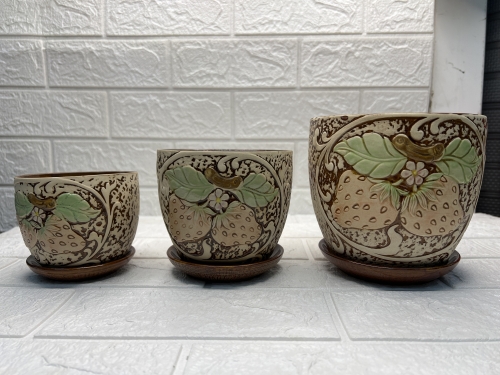 Кирамический горшок в наборе 3в1 М-10-9 0.5л С-12-11 1л Б-14-14 2л