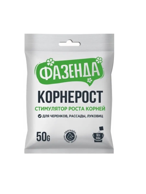 №3967 Корнерост Фазенда «Корнерост» 50 г — стимулирующее средство для растений, предназначенное для активизации роста корневой системы и улучшения укоренения при пересадке. Это регулятор роста с действующим веществом, который помогает черенкам, рассаде и саженцам быстрее образовывать корни и приживаться после пересадки