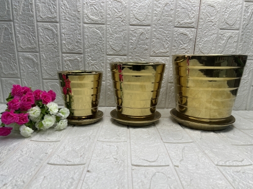 Золотой Кирамический горшок в наборе 3в1 М-13х15 С-17х18 Б-20х2