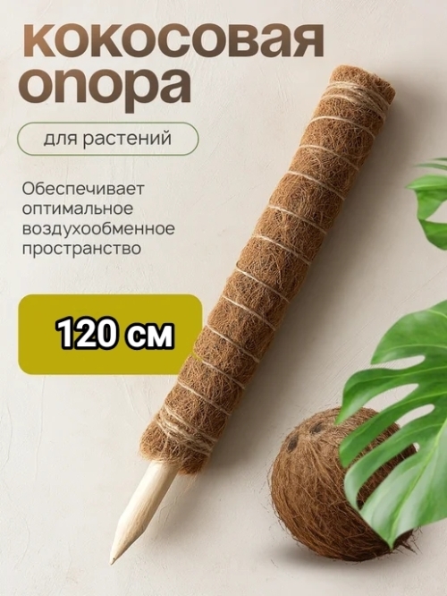 №5784 Кокосовоя опора 120 см Кокосовая опора для растений — натуральная опора из кокосового волокна для поддержки вьющихся и высоких растений.