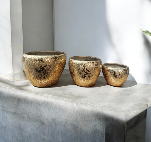 Серебряный кирамический горшок в наборе 3в1 М-15х12 С-20х15 Б-25х18