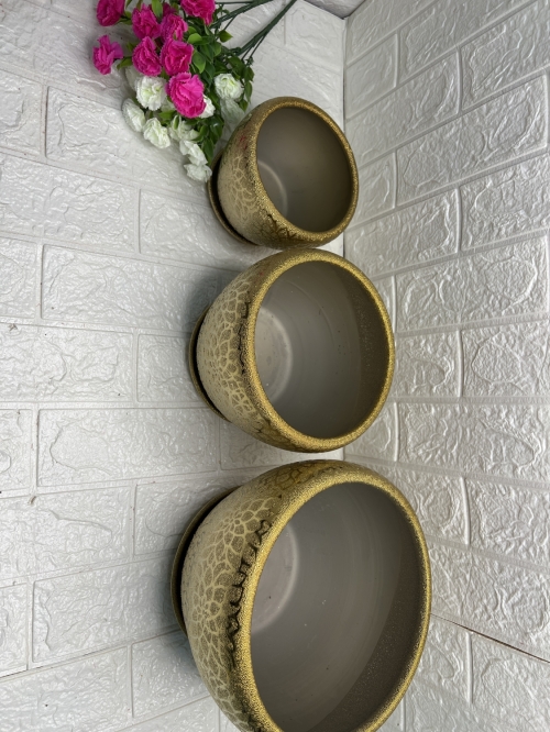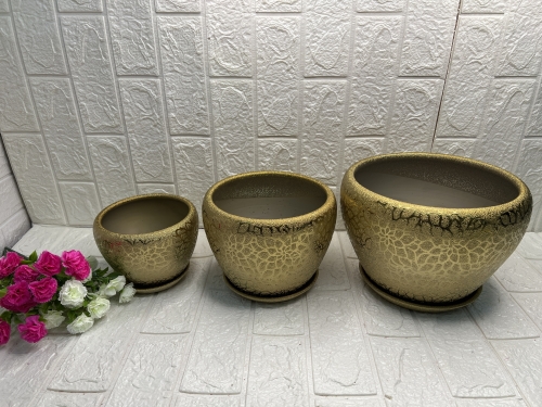 Золотой кирамический горшок в наборе 3в1 М-15х12 С-20х16 Б-25х18