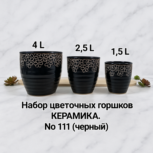 Одно тоный кирамический горшок в наборе 3в1