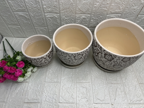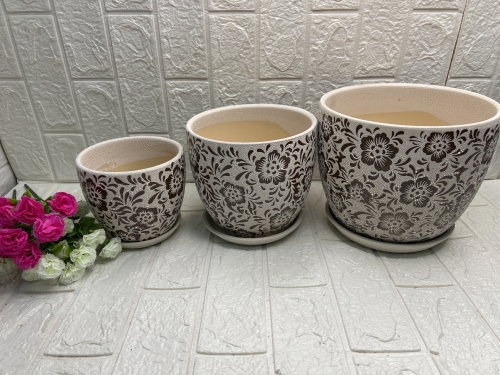 Одно тоный кирамический горшок в наборе 3в1 М-15х13 С-19х17 Б-23х19