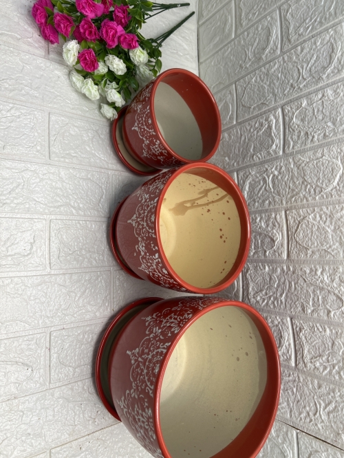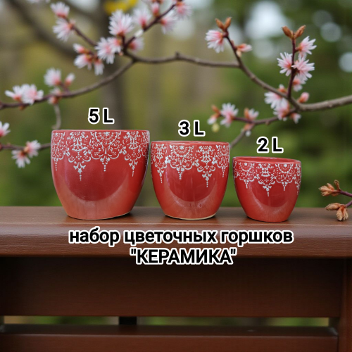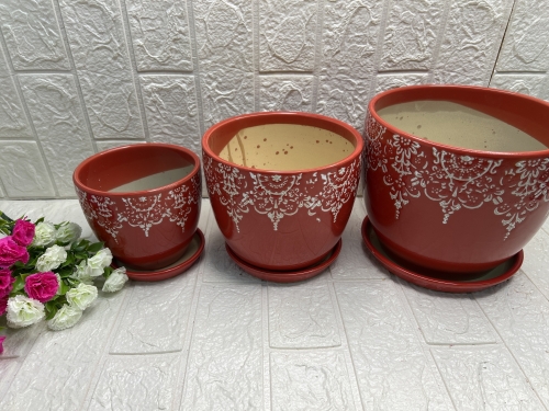 Одно тоный красный Кирамический горшок в наборе 3в1 М-14х13 С-18х16 Б-22х18