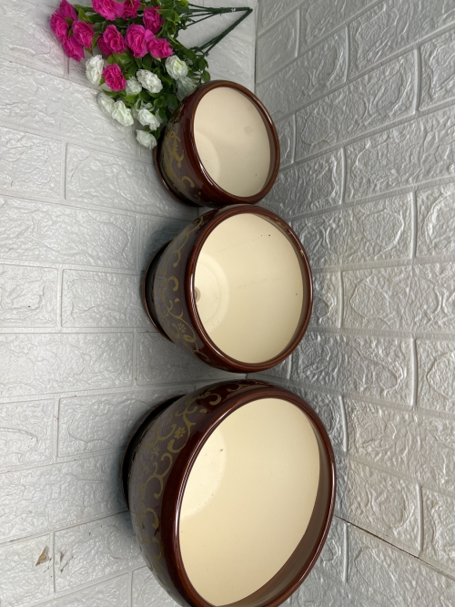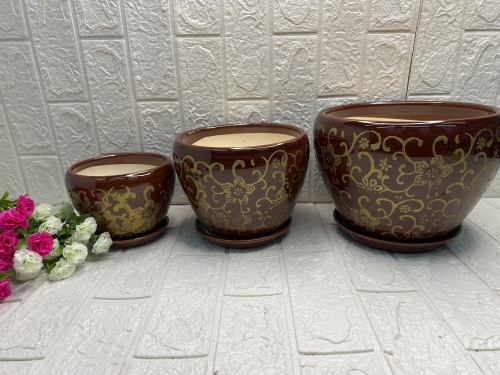 Одно тоный коричневый Кирамический горшок в наборе 3в1 М-15х12 С-20х16 Б-25х19