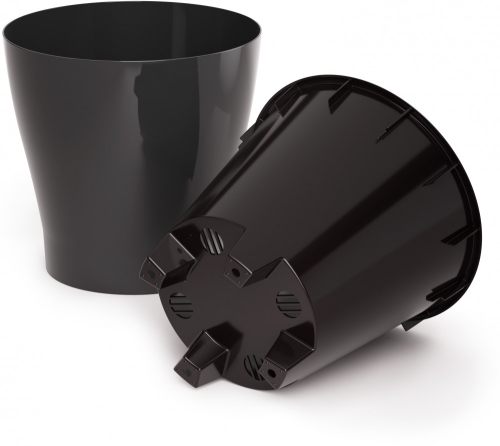 Горшок глянцевые с двойным ставкой цвет темно серый Размер 16х15