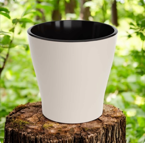 Горшок глянцевый с двойным ставкой цвет кремовый Размер 16х15