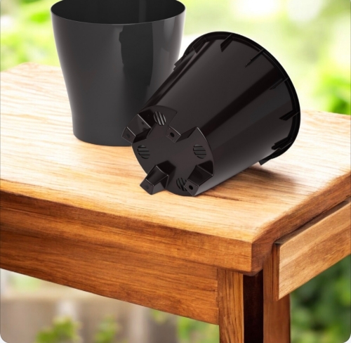 Горшок глянцевый с двойным ставкой цвет темно серый Размер19х18