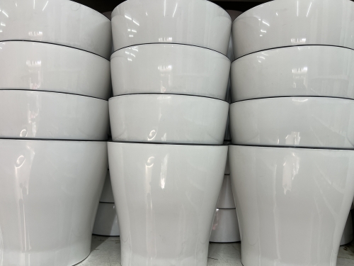 Горшок глянцевый с двойным ставкой цвет белый Рахмет 21х20