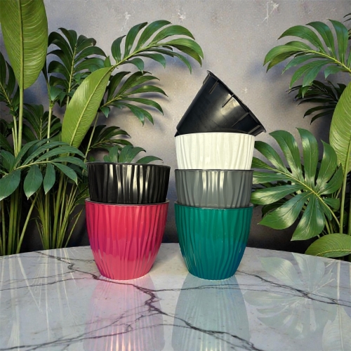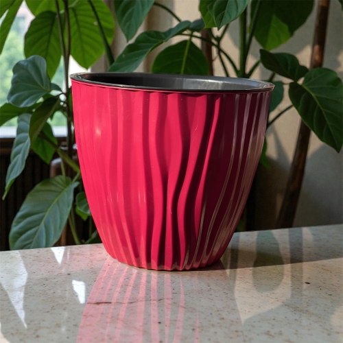 Горшок глянцевый с вертикальной волной с двойным ставкой Размер 16х15