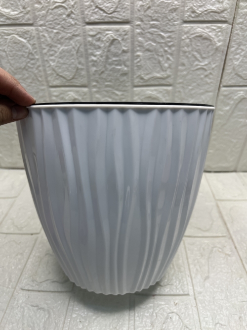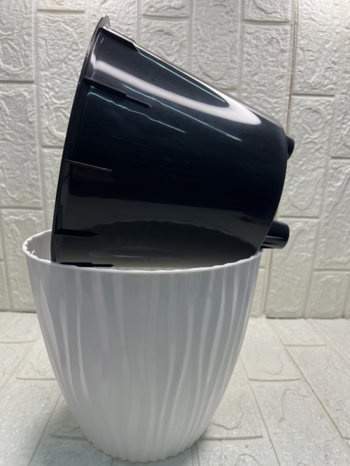 Горшок глянцевый с вертикальной волной с двойным ставкой цвет белый Размер 24х21