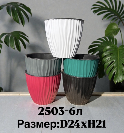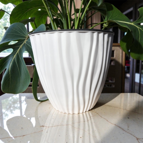 Горшок глянцевый с вертикальной волной с двойным ставкой Размер 24х21