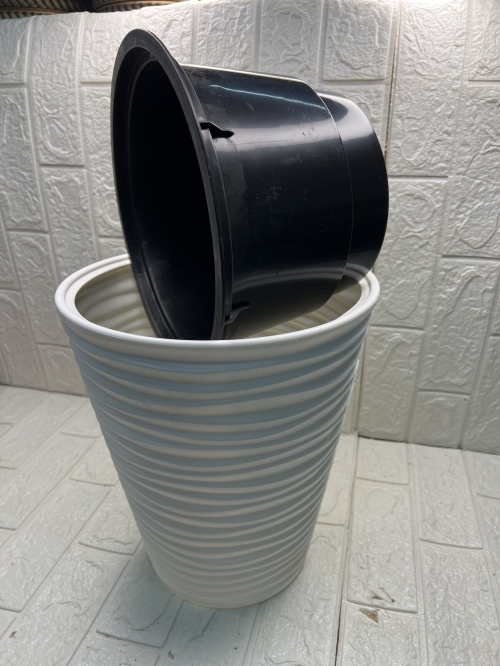 Кашпо волна с двойным ставкой Цвет белый Размер 30х32 Внутренний ставка 6л